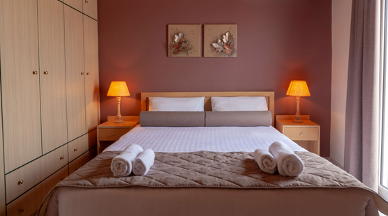 Two of the family apartments at Lilian's are on the second floor with large balconies and sea view, a great option for accommodation in Tolo close to the beach.
